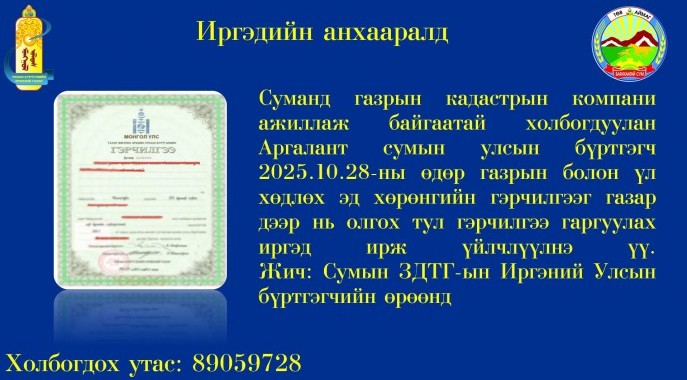 Газрын болон эд хөрөнгийн гэрчилгээ олгох нээлттэй хаалганы өдөрлөг